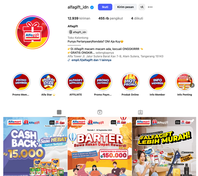 Membangun Instagram alfamart dari offline ke online, kini mencapai 455K followers.