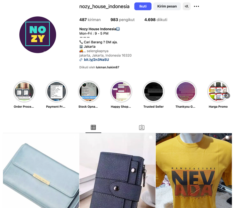 Membangun Instagram Nozy House dari offline ke online, kini mencapai 983 followers.