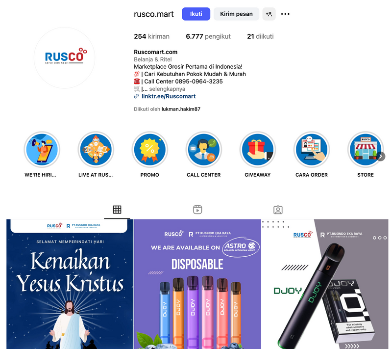 Membangun Instagram Ruscomart dari offline ke online, kini mencapai 6K followers.