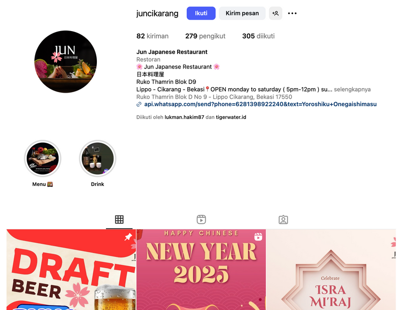 Membangun Instagram Jun Resto dari offline ke online, kini mencapai 279 followers.